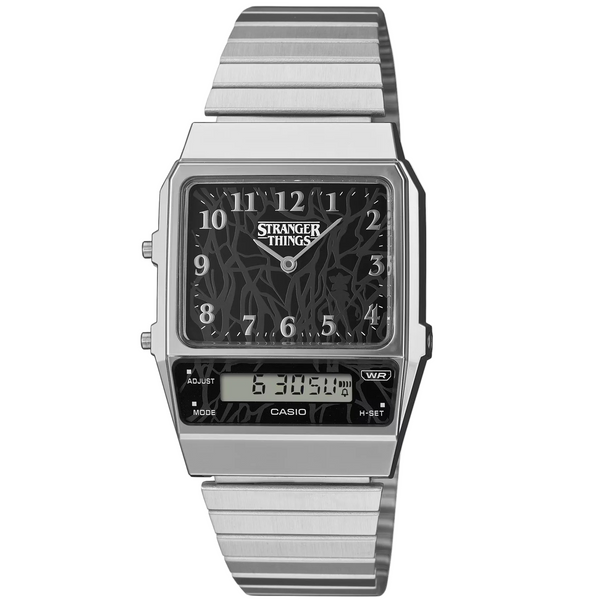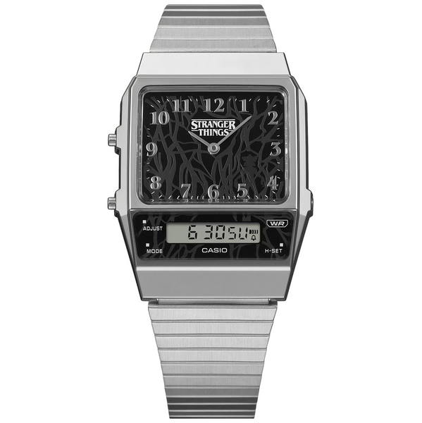 This timepiece is based on the AQ800. Drawing from the dual worlds of the story — the familiar reality and the eerie “Upside Down” — the design weaves key elements of the series into every detail.