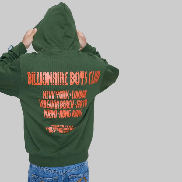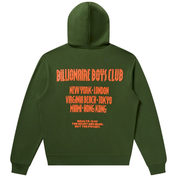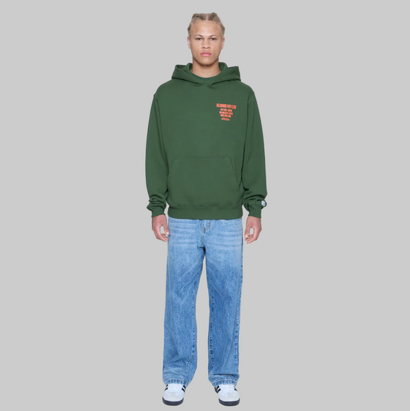 Satellite Hoodie features a kangaroo pocket, the Straight logo, city call-outs, and the brand's mantra on the front left chest and back.