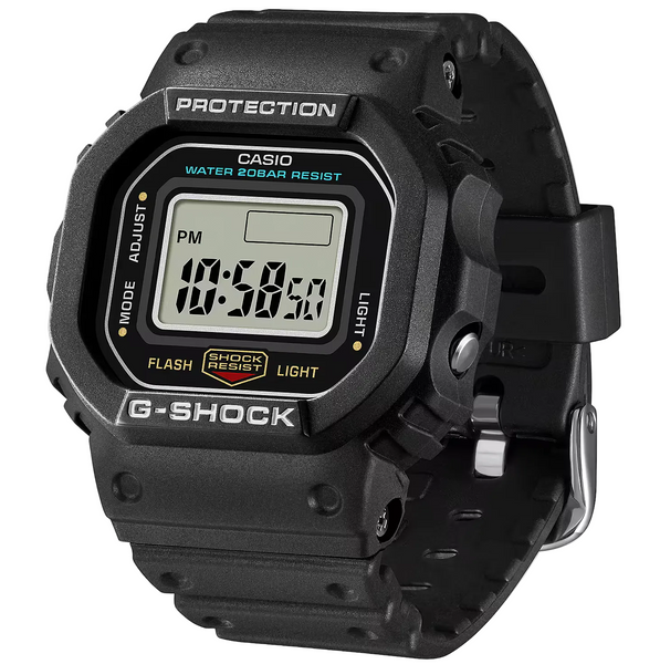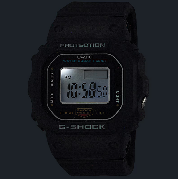 Ring watches can be exposed to a lot of hardship as you work and move throughout your day: bumps, scratches, knocks, hits, and handwashing are constant threats. To counter these and other daily obstacles, shock resistance is at the forefront of G-SHOCK Nano watch ring design, and scratch-resistant mineral glass protects the digital LCD. A G-SHOCK wouldn't be a G-SHOCK without superb water resistance. The DWN5600-1 and all G-SHOCK Nano ring watches are submersible in water up to 200 meters (wr 20 bar), an impressive feat for a finger watch. G-SHOCK set out over 40 years ago to build an indestructible watch and continues that legacy in the G-SHOCK Nano.