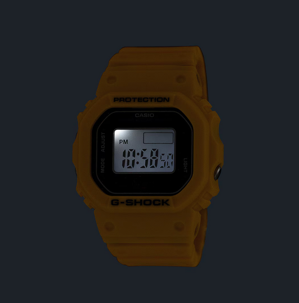 Even at this small size, the LCD presents all the info you need — hours, minutes, and seconds, as well as dual time, stopwatch, and auto calendar. A soft, flashing light activates at your chosen time, adding a subtle and emotive glow. The bezel and band are made with bio-based resin, reflecting a commitment to environmental sustainability. Choose your favorite of the three most popular colors in DW-5600 history — black, yellow, or red. Each G-SHOCK nano comes in a special package with a dedicated silicone stand, for a timepiece that’s infinitely wearable and collectible.