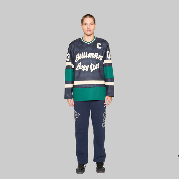 The Celsius Jersey LS Knit features the Billionaire Boys Club logo on front and "03" branding on sleeves and back.